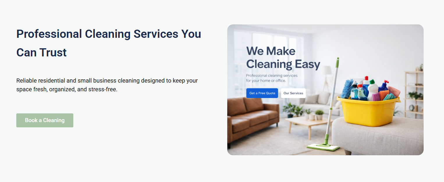 Reliable residential and small business cleaning designed to keep your space fresh, organized, and stress-free.